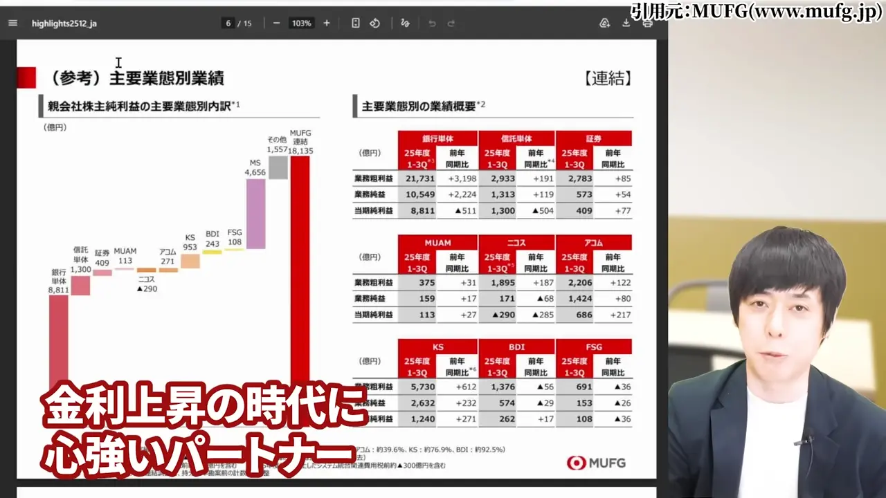 各行の決算資料には明確に金利による業績改善が記載されています。