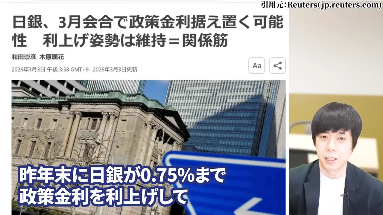 2025年末に日銀が政策金利を0.75%まで引き上げましたが、