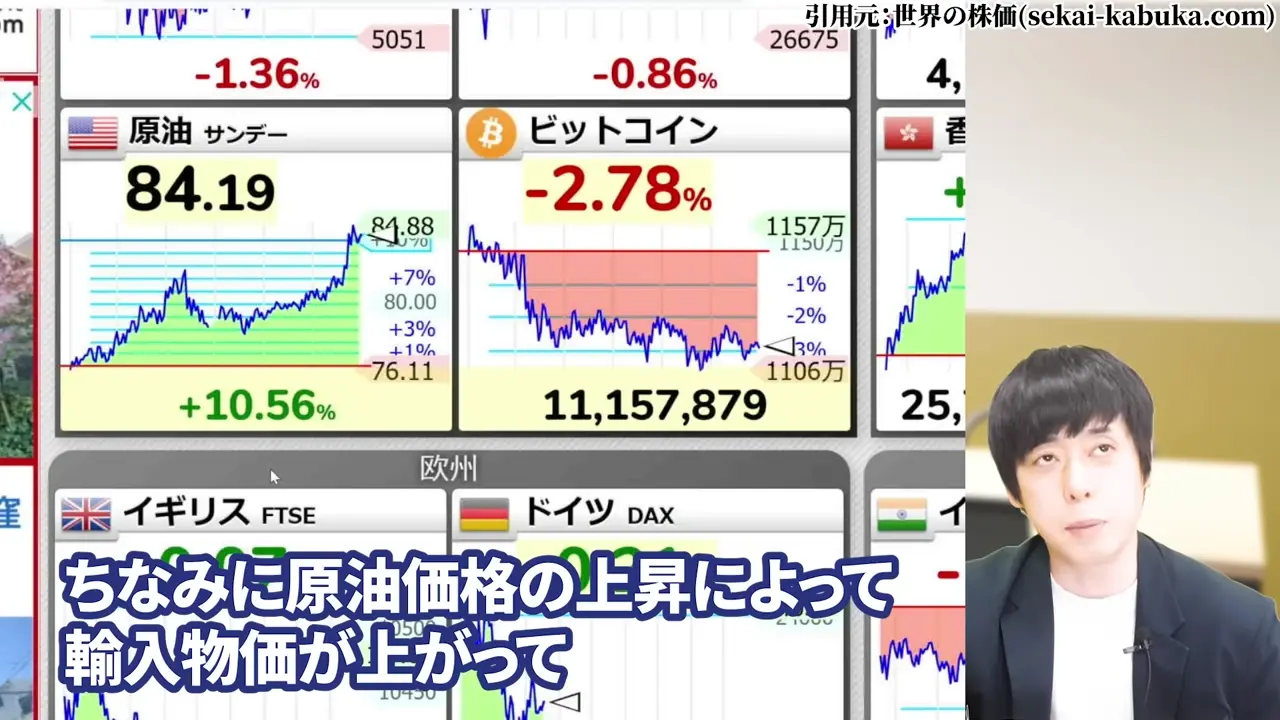 今回のイラン情勢による原油価格上昇は、輸入物価を押し上げてインフレが加速するとの観測から、
