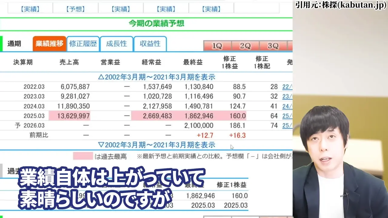 業績自体は伸び続けているものの、成長率が段階的に低下しています。