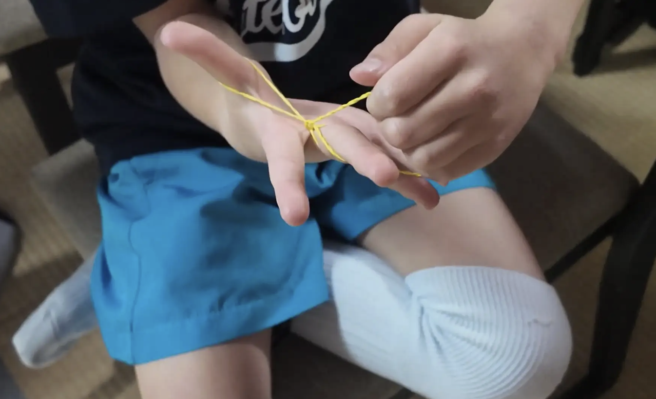 学生ボランティアのサポートを受けながら、子どもたちは真剣な表情で指先の動きを練習しました。最初は「難しい!」と苦戦していた子も、オイマジックの丁寧な指導により、次第にコツを掴んでいきました。